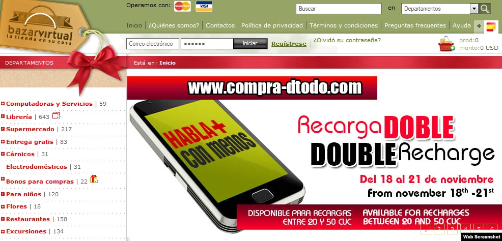 Se trata de servicios que se pagan desde fuera de la isla para comprar productos que, en su mayor parte, tienen como destinatarios a los cubanos, como el caso de alimentos o electrodomésticos ofertados en supermercados nacionales que ya permiten esa opción online o la posibilidad de recargar desde fuera el saldo de los teléfonos móviles que se utilizan en la isla.