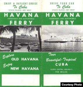 "Maneje su auto a Cuba", anunciaba un folleto de los años 50 invitándole a subir su automóvil al ferry que salía tres veces a la semana de Stock Island –islote contiguo a Cayo Hueso y rodeado por aguas profundas– para, una vez en Cuba, salir manejando del barco a "explorar la Habana Vieja" y "disfrutar de la nueva Habana", la que plasmó en sus novelas, extendiéndose impetuosa hacia el oeste, el irrepetible Guillermo Cabrera Infante.