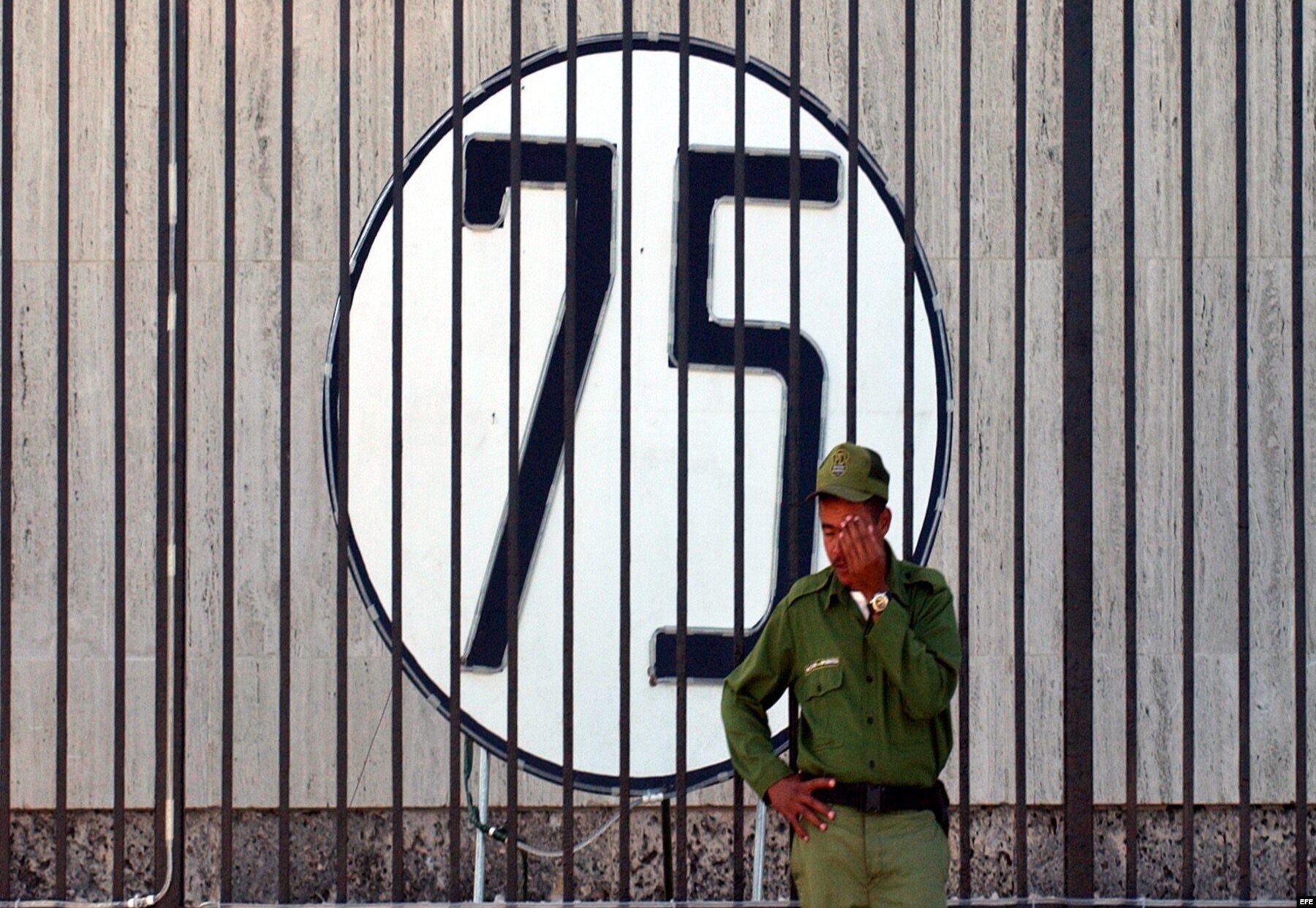 Edificio de la Embajada de Estados Unidos en La Habana, custodiado por soldados del Regimiento de Protección y Seguridad a Sedes Diplomáticas en Cuba.
