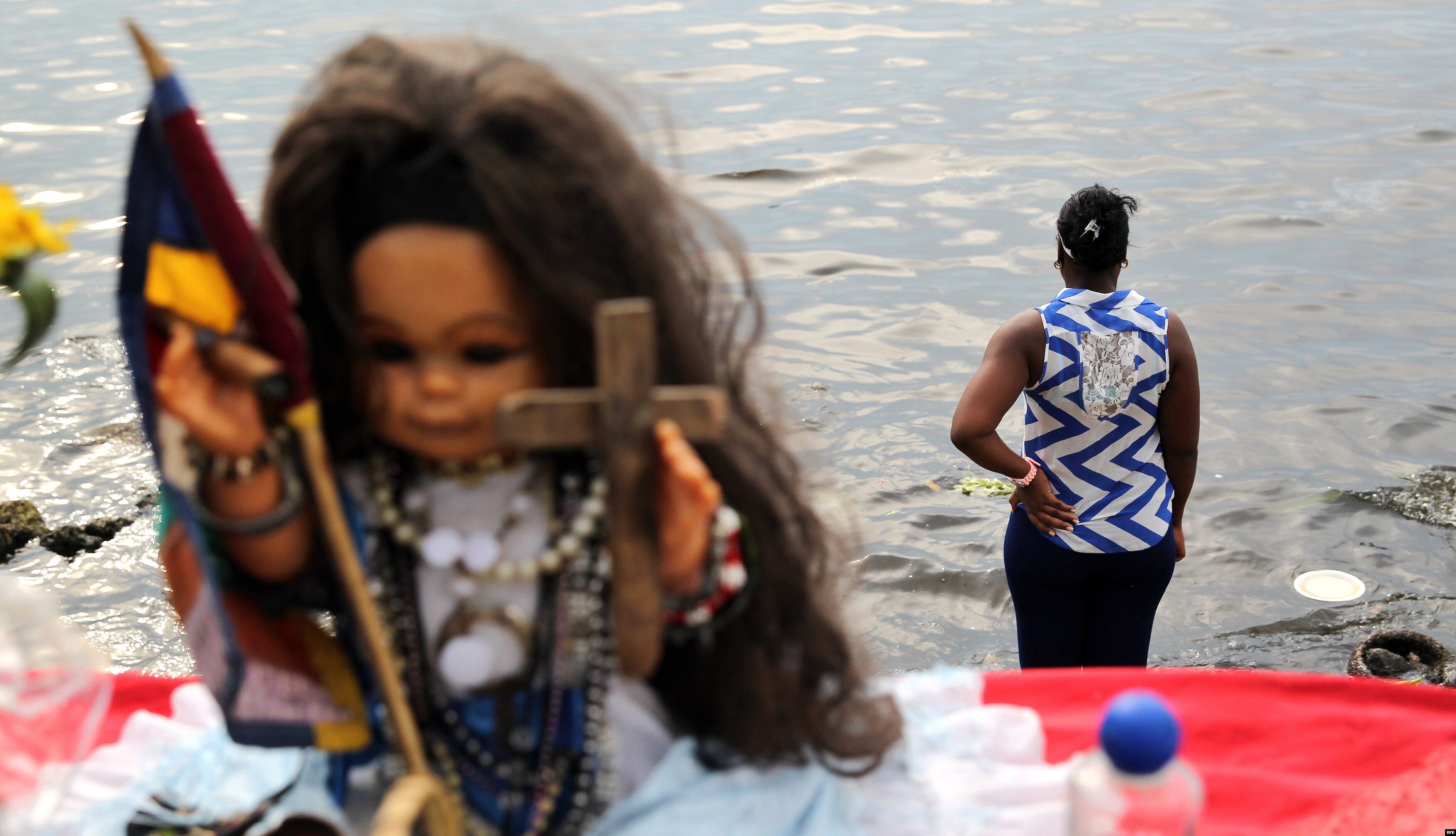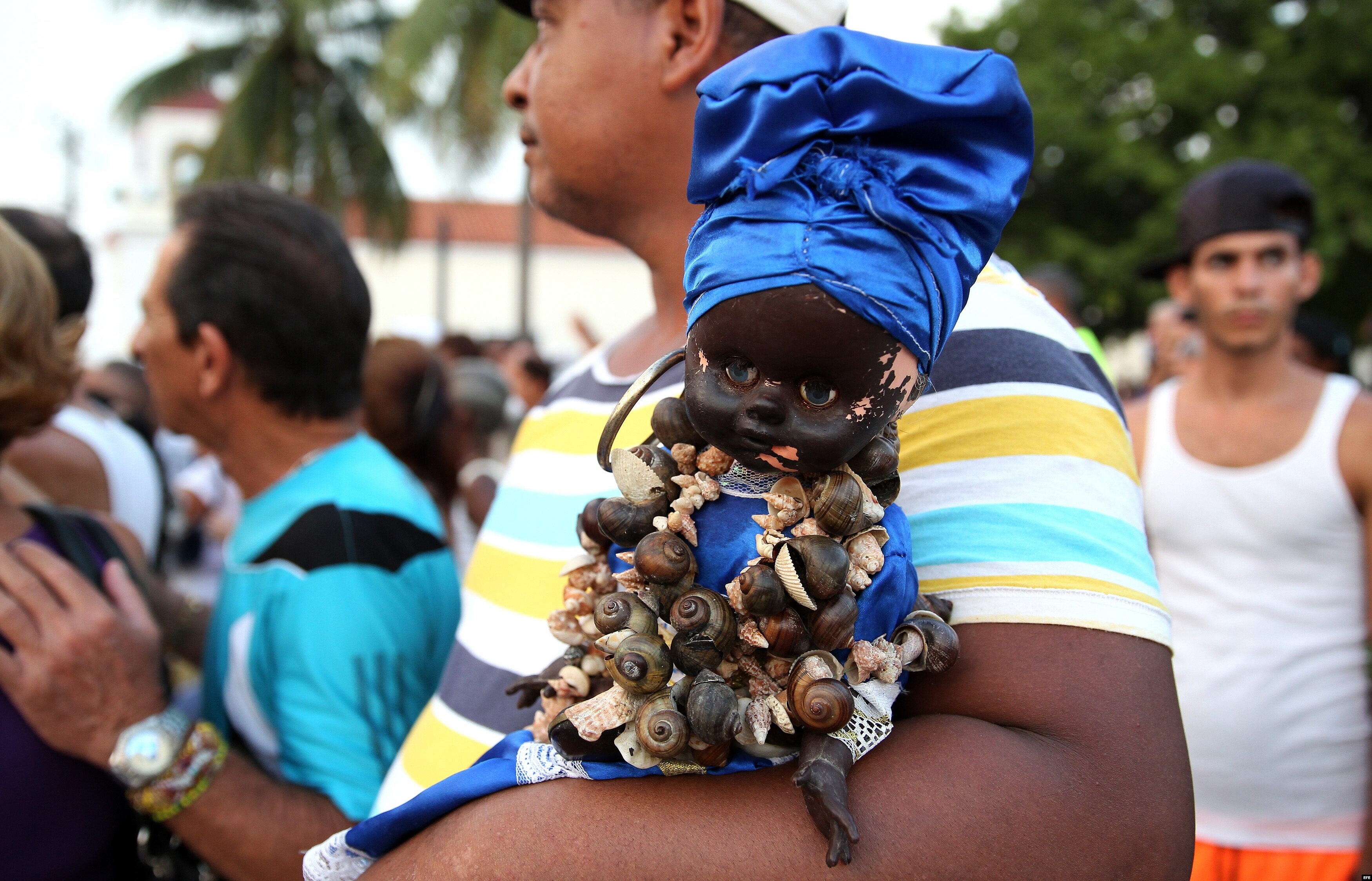 La imagen de esta Virgen negra -que en el culto africano es Yemayá, diosa del mar y la maternidad- fue transportada al hombro por una decena de sacerdotes y voluntarios en su recorrido por calles de adoquines el lunes al anochecer, en una celebración que se remonta a la colonia española.