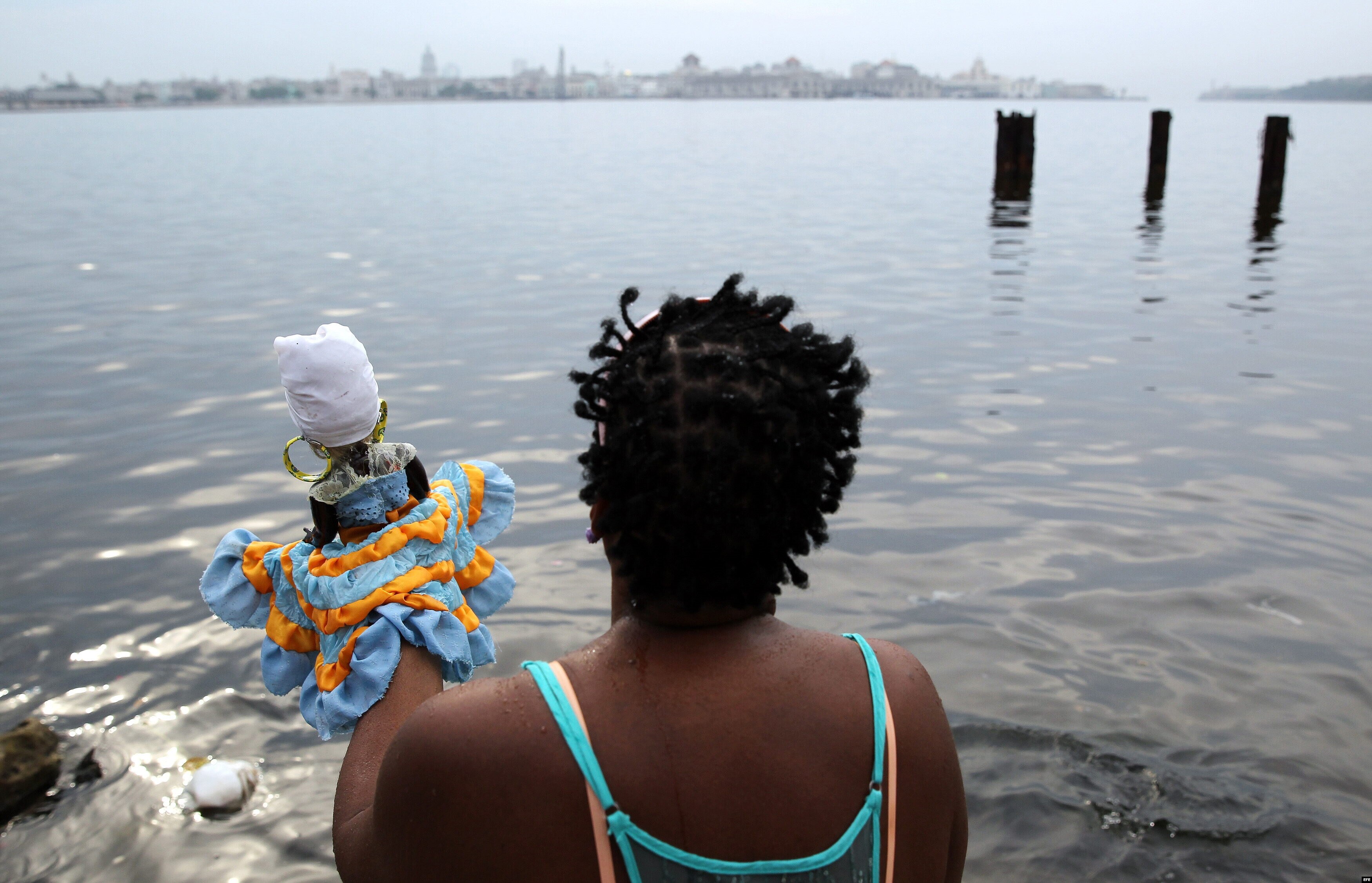 Vestidos de azul, creyentes cubanos rogaron a la Virgen de Regla que les conceda diversos milagros, en una procesión cargada de devoción ante la próxima visita del papa Francisco a la isla.