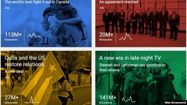 Con más de 27 millones de búsquedas, el restablecimiento de relaciones diplomáticas EEUU-Cuba se encuentra entre los temas más buscados en Google en 2015, reportó la compañía en su habitual resumen de fin de año.