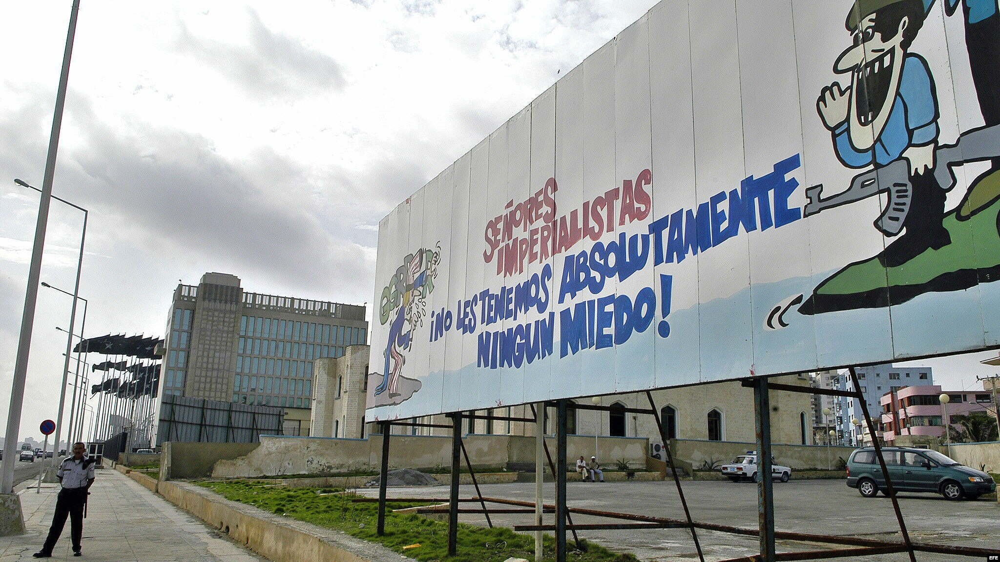 En 2006, los diplomáticos estadounidenses instalaron abruptamente un tablero electrónico que mostraba mensajes que glorificaban la democracia y el respeto a los derechos humanos a los cubanos que pasaban por la calle. El gobierno cubano instaló decenas de banderas negras para tapar la vista.