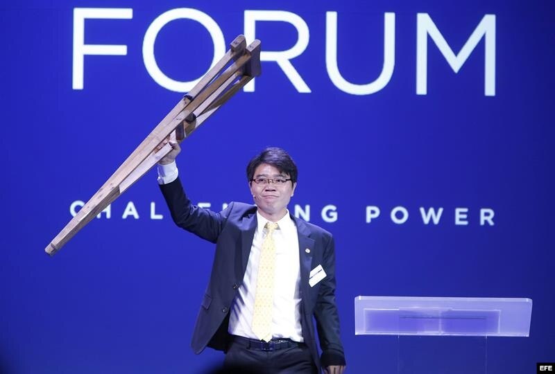 "Es muy importante hablar al mundo de lo que pasa en Corea del Norte, pero es aún más importante hablarle a los norcoreanos del mundo de fuera", aseguró el norcoreano, quien alzó su muleta de madera "como un símbolo de que se puede lograr con cualquier cosa".