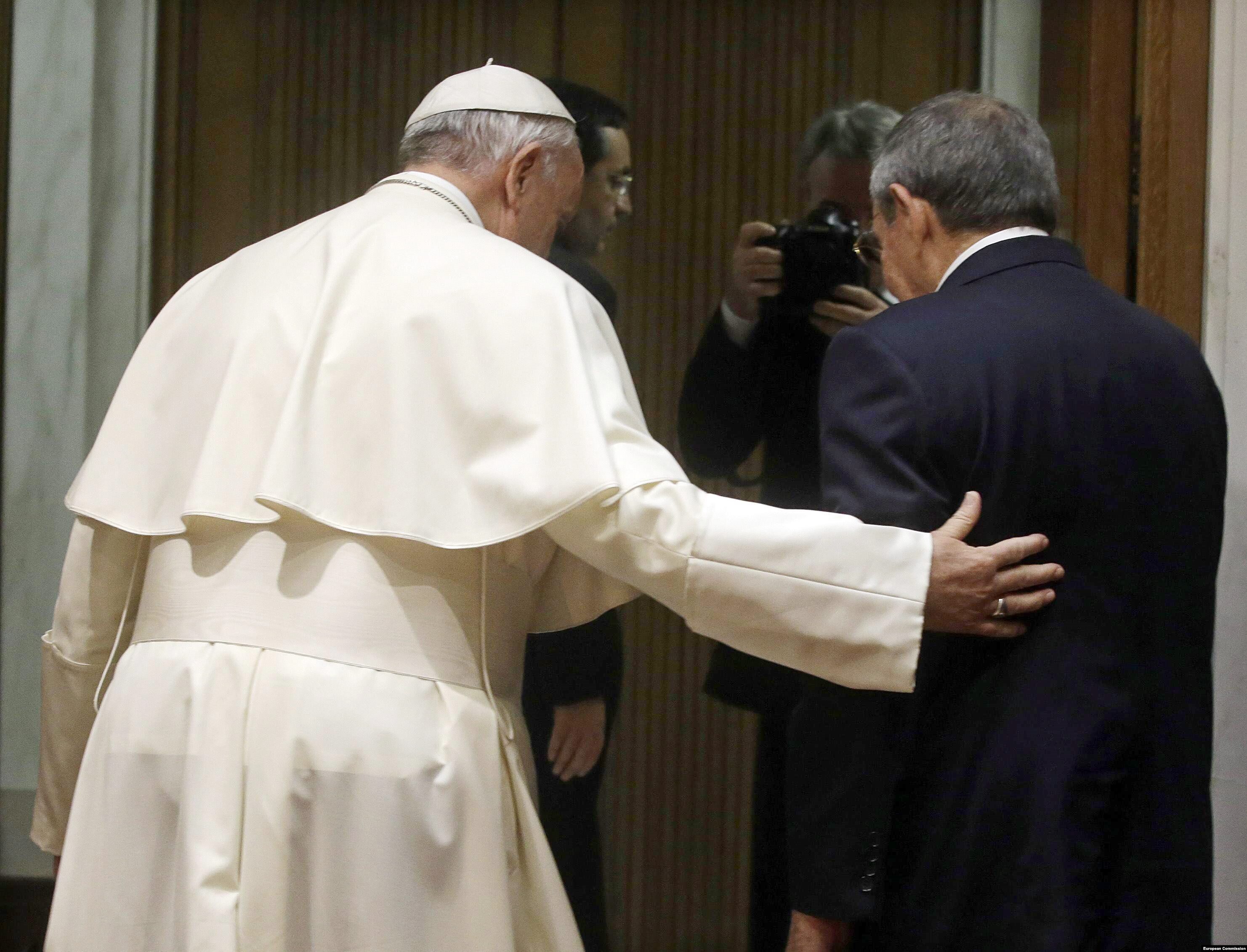 El gobernante cubano se tocó hoy el pecho con la mano a la altura del corazón y confesó al oído del papa Francisco: "es la visita más importante de toda mi vida. De verdad".