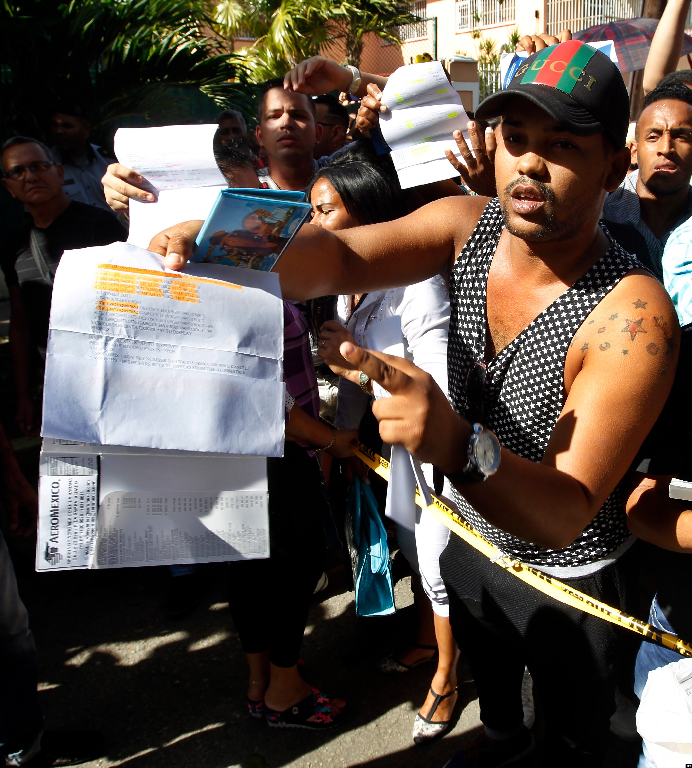 Los manifestantes dijeron estar frustrados por la nueva regla del Gobierno de Ecuador que pedirávisa a los cubanos antes de visitar el país sudamericano a partir del 1 de diciembre.
