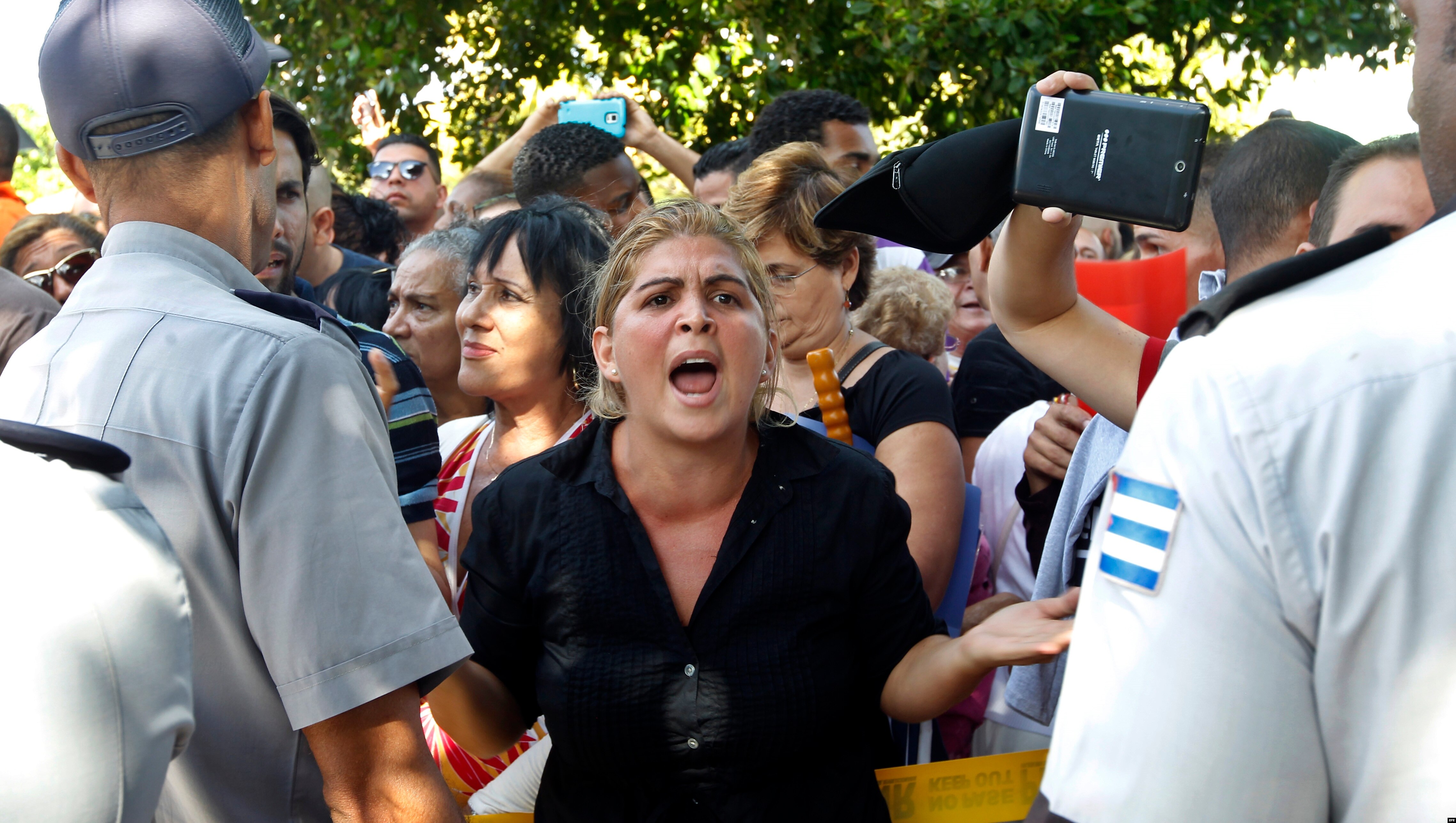 La policía bloqueó por la mañana el área que rodea la embajada de Ecuador, en la zona de Miramar de La Habana, y la multitud disminuyó a unas 200 personas.