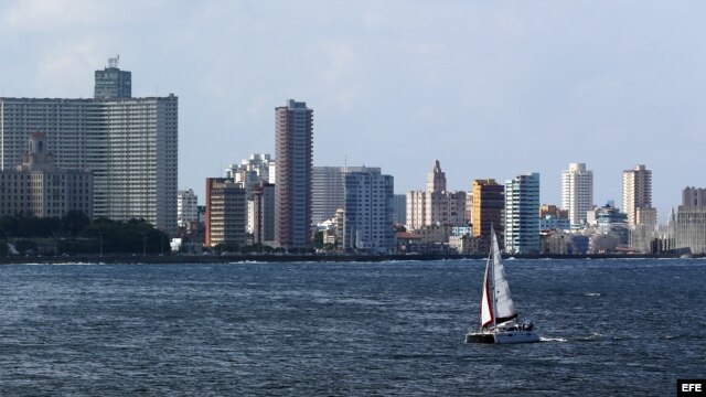 Una embarcación compite en la regata "Castillo del Morro" el viernes 6 de noviembre de 2015, en La Habana (Cuba). Una docena de embarcaciones procedentes de Pensacola (Fl, EE.UU.) participan en la competencia.