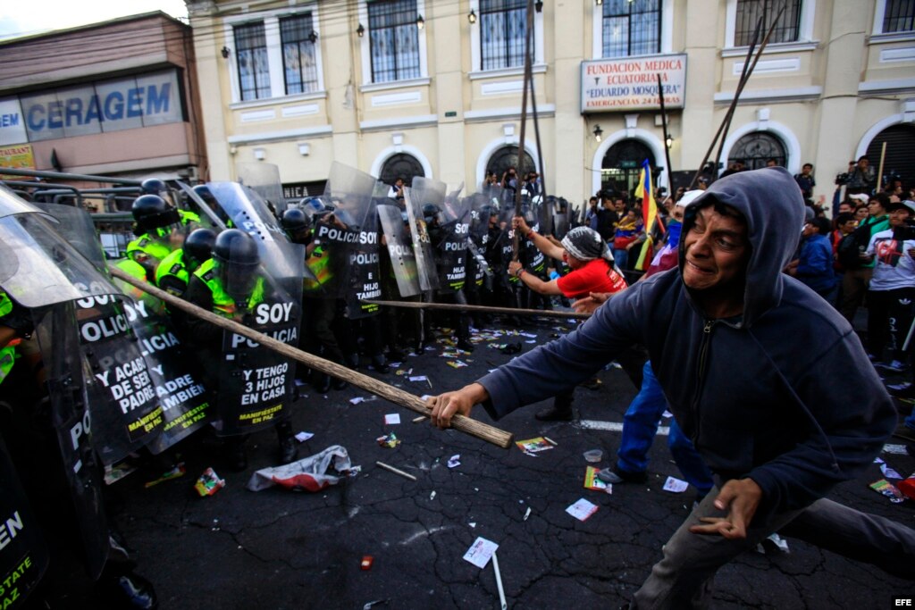 Tras la aprobación, cientos de manifestantes trataron de llegar a la sede legislativa mientras gritaban "¡Fuera Correa, fuera!", en medio de enfrentamientos a palos y pedradas con la policía, que respondió con gases lacrimógenos.