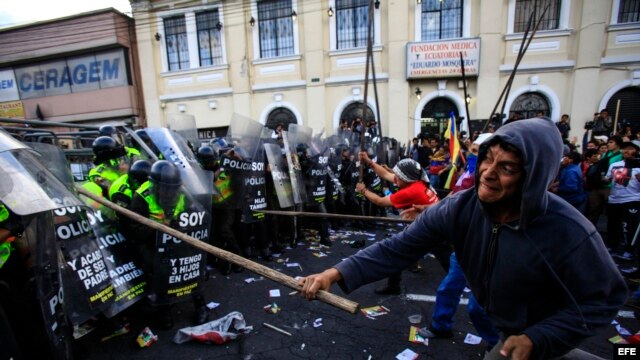 La policía carga contra manifestantes en Ecuador tras aprobación por la Asamblea de enmiendas constitucionales que autorizan reelección ilimitada.