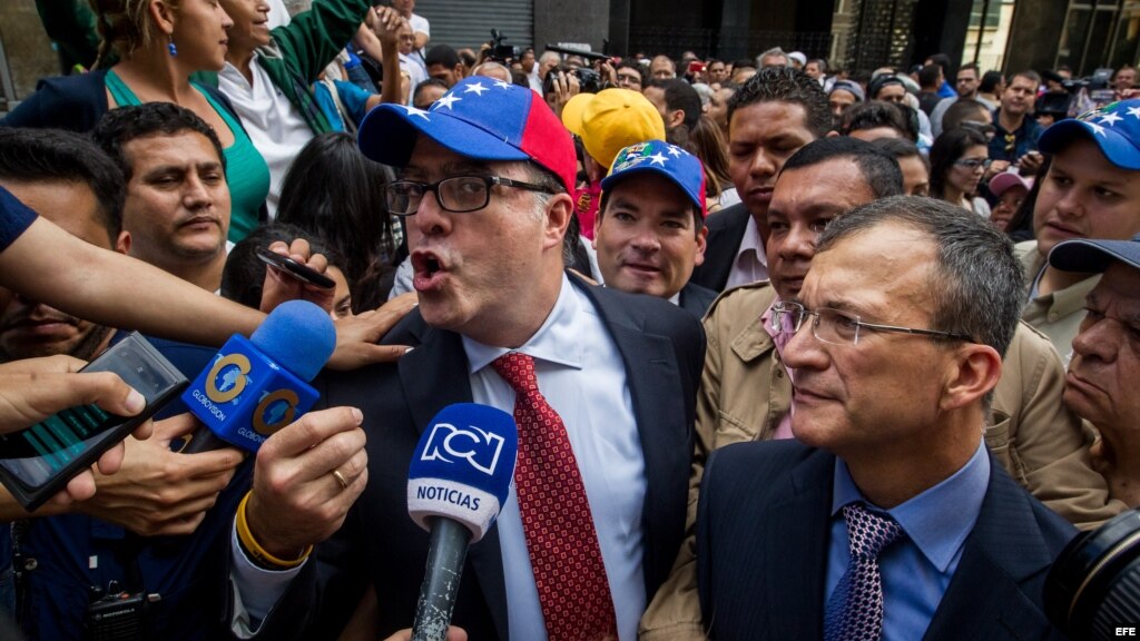 El diputado de la Mesa de Unidad Democrática (MUD) Julio Borges habla con la prensa a su llegada para la instalación de la Asamblea Nacional. EFE